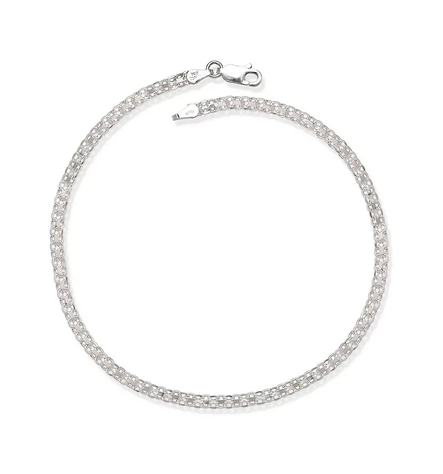 Curata Jewelry 925 Sterling 10 Inch 4mm Sparkle-Cut Wide Singapore Chain Ankle Bracelet Anklet