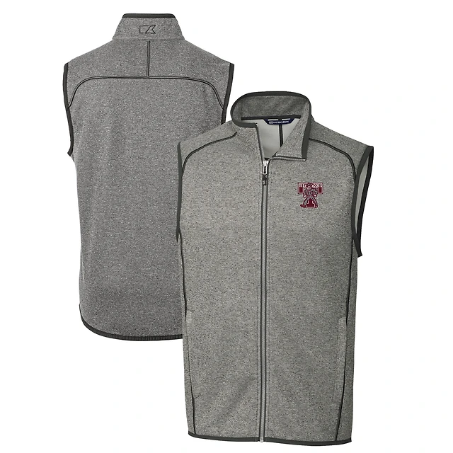 Men's Cutter & Buck Heather Gray Texas A&M Aggies Big & Tall Mainsail Sweater-Knit Full-Zip Vest
