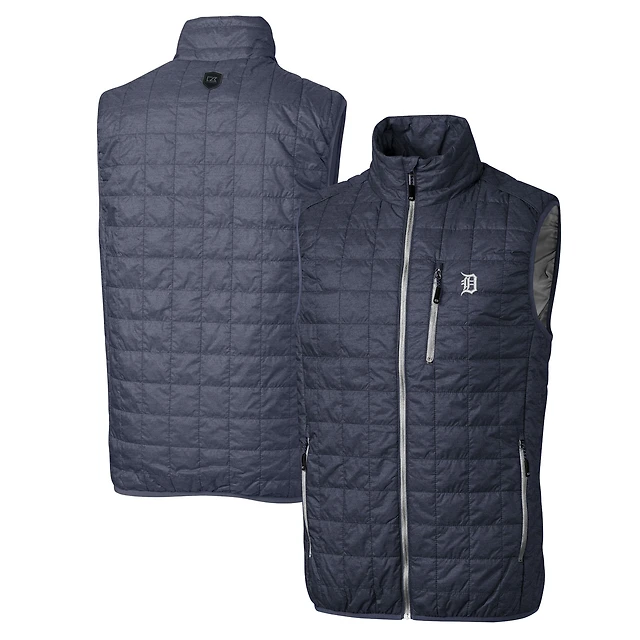 Men's Cutter & Buck Anthracite Detroit Tigers Big & Tall Rainier PrimaLoft® Eco Insulated Full-Zip Puffer Vest