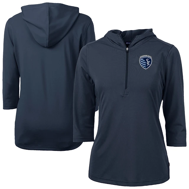 Women's Cutter & Buck Navy Sporting Kansas City Virtue Eco Pique Recycled Half-Zip Pullover Hoodie
