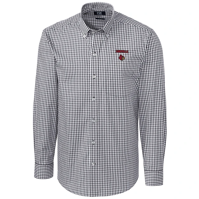 Men's Cutter & Buck Red Kansas City Chiefs Big & Tall Stretch Gingham Long Sleeve Woven Button Down Shirt