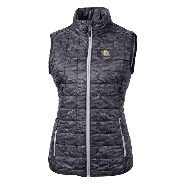 Women's Cutter & Buck Black Albany State Golden Rams Eco Full-Zip Puffer Vest