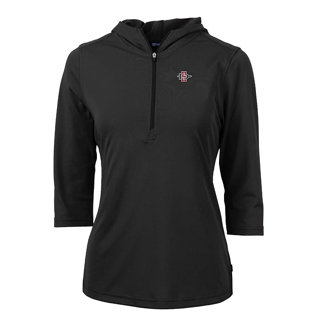 Women's Cutter & Buck Black San Diego State Aztecs Virtue Eco Pique Half-Zip 3/4 Sleeve Pullover Hoodie