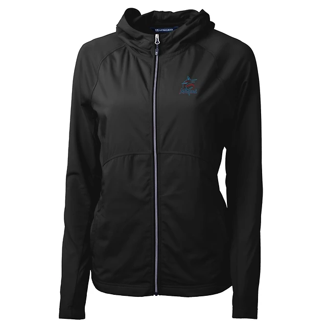 Women's Cutter & Buck Black Miami Marlins Adapt Eco Knit Full-Zip Jacket