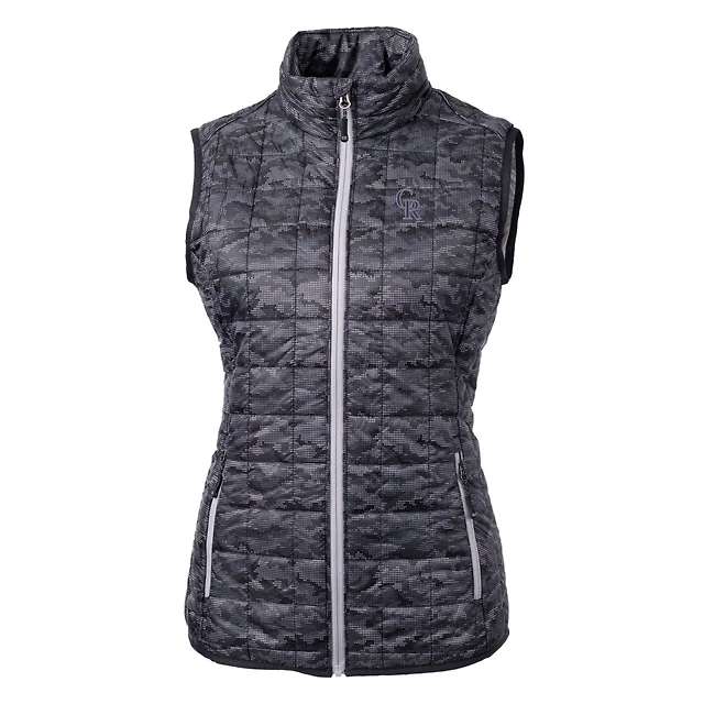 Women's Cutter & Buck Black Colorado Rockies Rainier PrimaLoft Eco Printed Full-Zip Puffer Vest