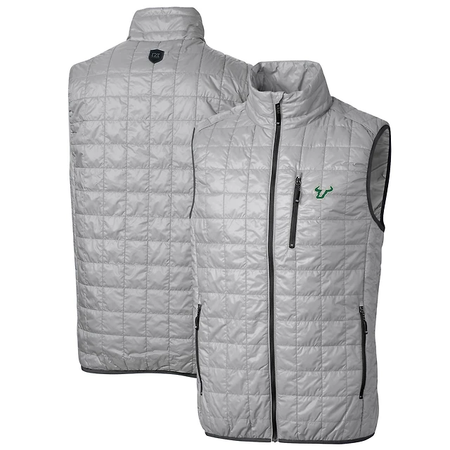 Men's Cutter & Buck Gray South Florida Bulls Big & Tall Rainier PrimaLoft Eco Full-Zip Puffer Vest