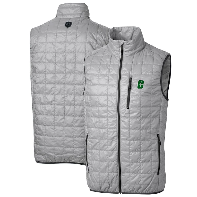 Men's Cutter & Buck Gray Charlotte 49ers Big & Tall Rainier PrimaLoft Eco Full-Zip Puffer Vest