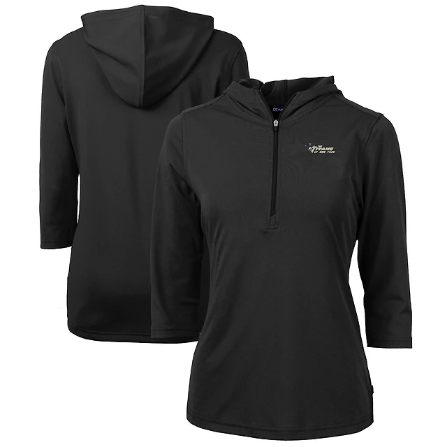 Women's Cutter & Buck Black New York Jets Throwback Logo Virtue Eco Pique 3/4 Sleeve Half-Zip Pullover Hoodie