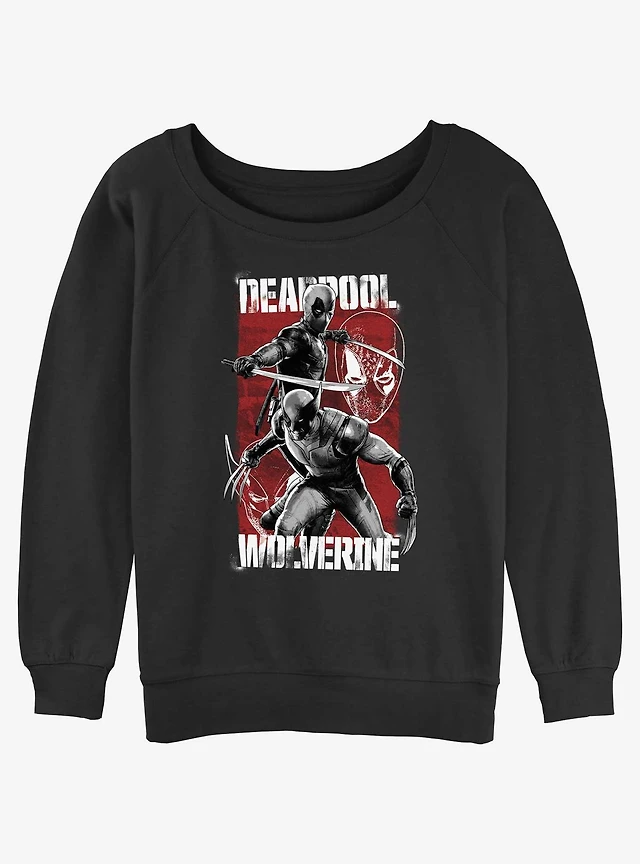 Marvel Deadpool & Wolverine Half Portrait Womens Slouchy Sweatshirt