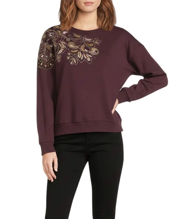 Democracy Crew Neck Long Sleeve Beaded Paisley Sweatshirt