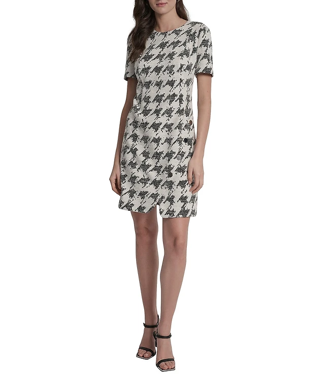 DKNY by Donna Karan Sequin Houndstooth Short Sleeve Shift Dress