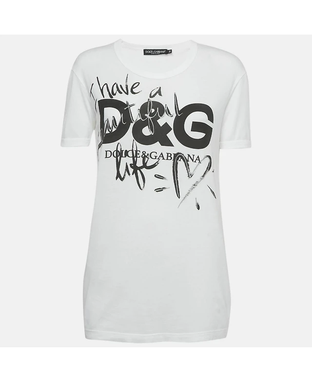 Pre-Owned Dolce & Gabbana Women's White Printed Cotton Sleeveless T-Shirt