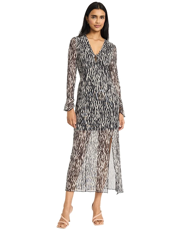 Donna Morgan Matte Jersey Wavy Print Crew Neck Long Sleeve Sheath Maxi Dress