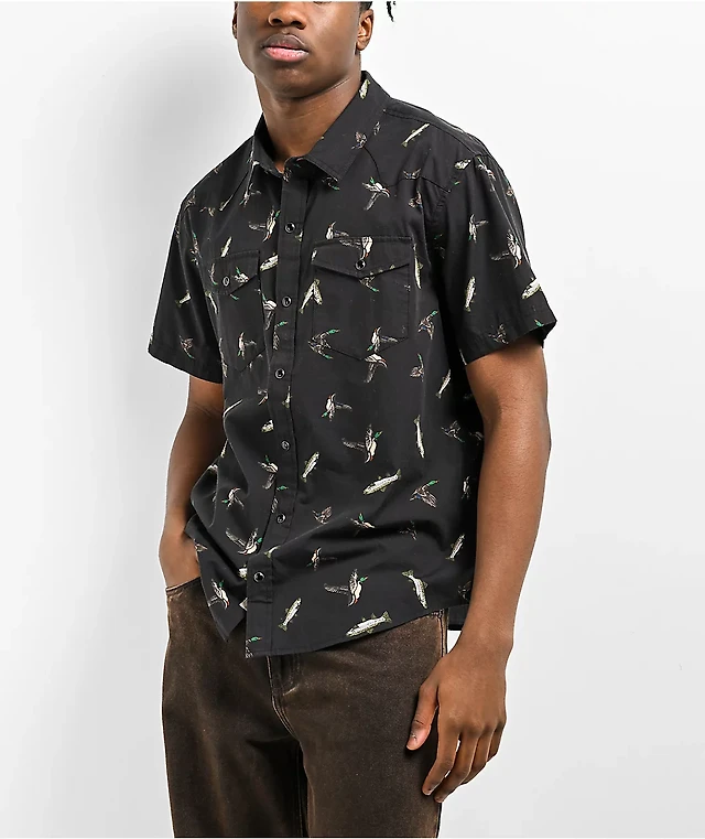 Dravus Kingfisher Black Button Up Short Sleeve Shirt