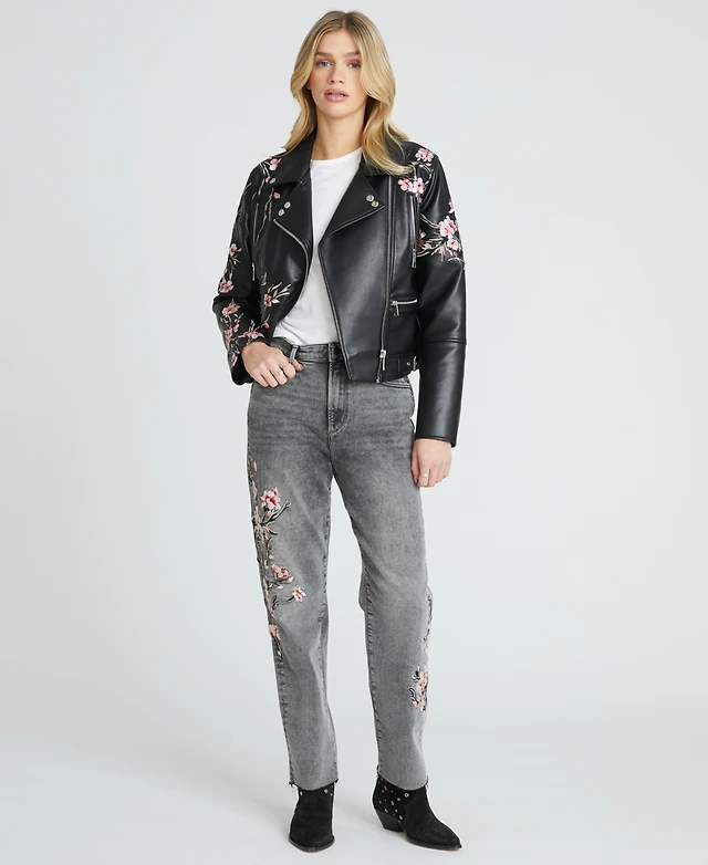 Driftwood Women's Long-Sleeve Embroidered Floral Moto Style Jacket