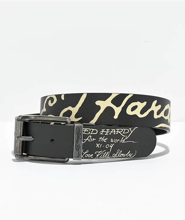Ed Hardy Skull & Sword Black Reversible Belt