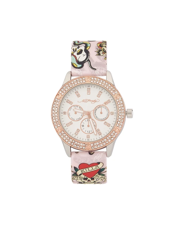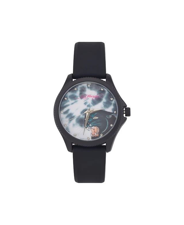 Ed Hardy Men's Matte Black Silicone Strap Analog Watch 53mm