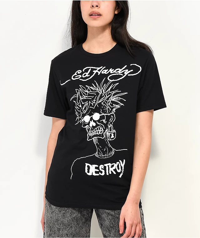 Ed Hardy Destroy Skeleton Black T-Shirt