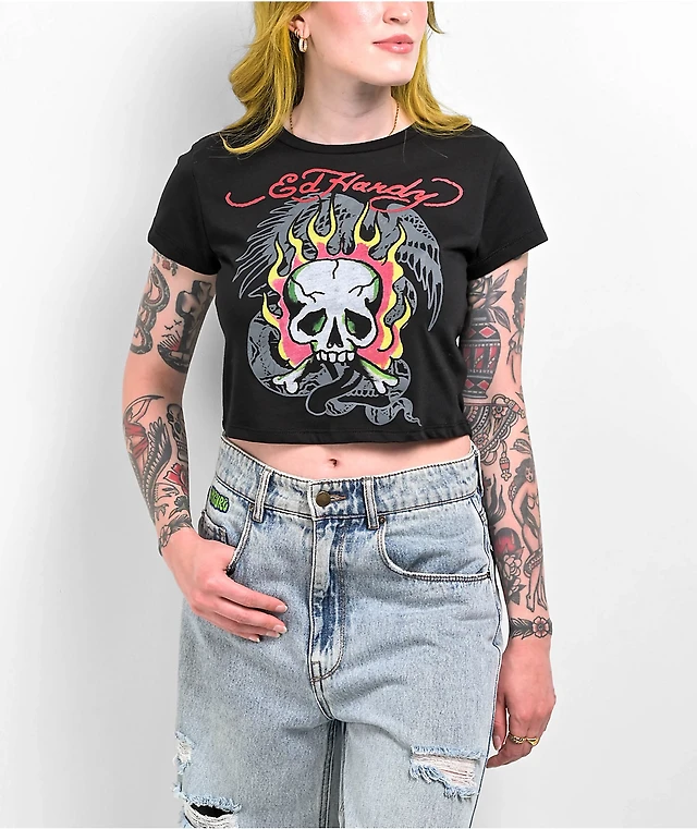 Ed Hardy Koi Splash Black Crop T-Shirt