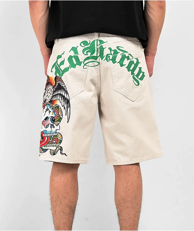 Ed Hardy Rose Heart Y2K White Sweat Shorts