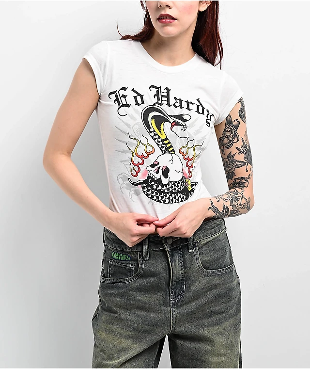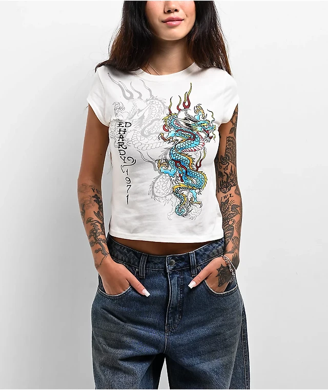 Ed Hardy Swallow Bird White Crop T-Shirt