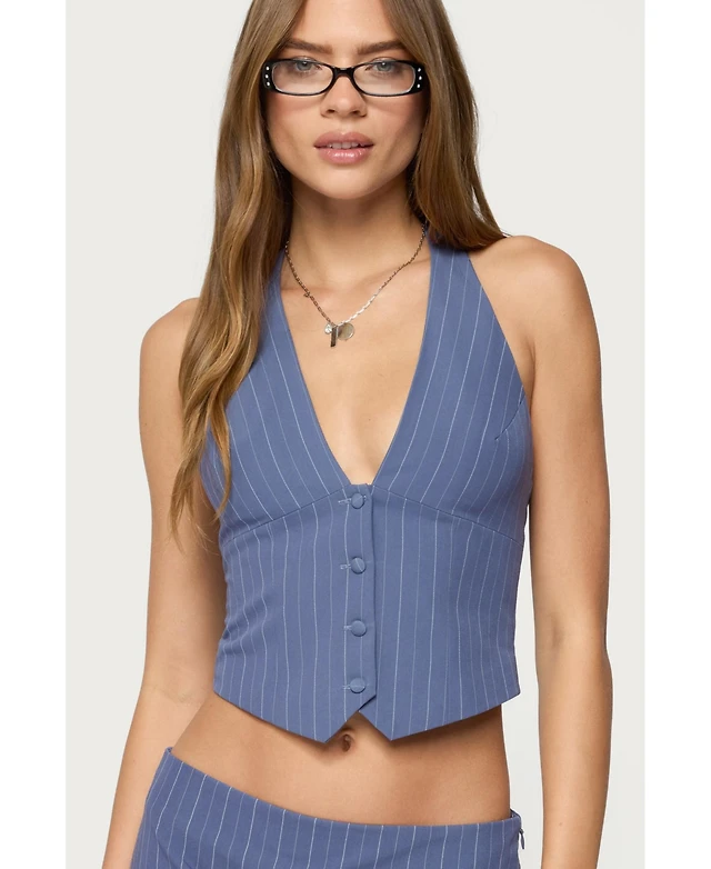 Edikted Womens Gwenne Pointelle Button Up Tank Top
