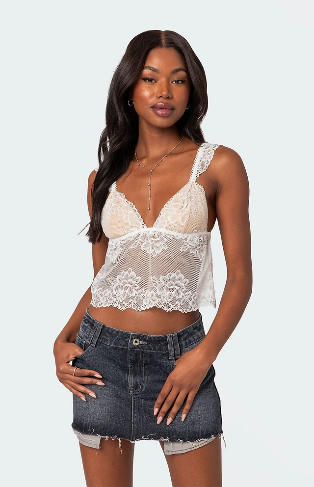 Edikted Cara Sheer Lace Open Back Tank Top