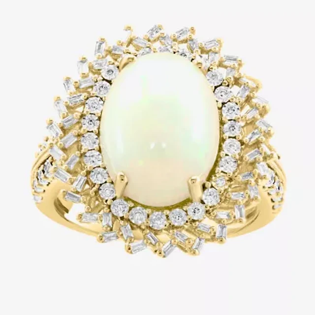 Effy Final Call Womens Gemstone & 3/8 CT. T.W. Diamond 14K Gold Halo Side Stone Cocktail Ring