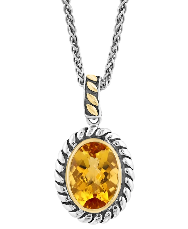 Effy Blue Sapphire (5/8 ct. t.w.) & Diamond (1/6 ct. t.w.) Flower Disc 18" Pendant Necklace in 14k Yellow Gold