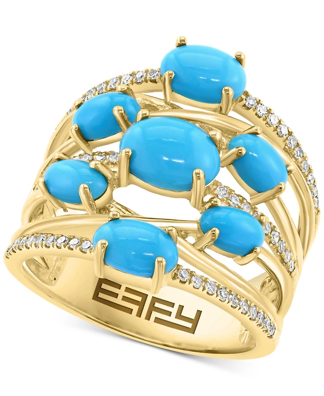 Effy Collection Diamond (3/8 ct. t.w.) & Aquamarine (1 ct. t.w.) Ring in 14k Gold