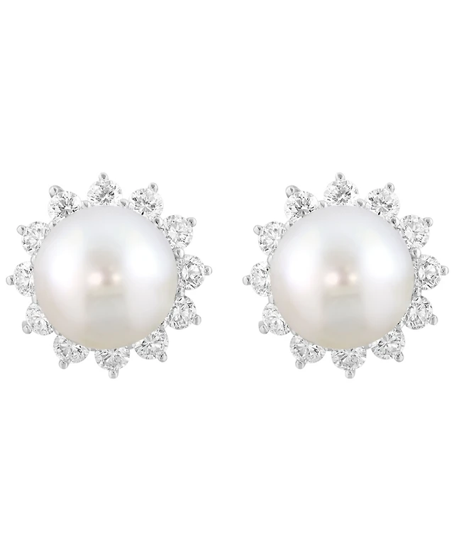 Effy Collection Freshwater Pearl (10mm) and Lab Grown Diamond Earrings (1-3/8 ct. t.w.) in Sterling Silver