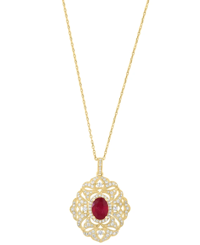 Effy Collection Ruby (1-1/8 ct. t.w.) & Diamond (3/8 ct. t.w.) Pendant Necklace in 14k Rose Gold