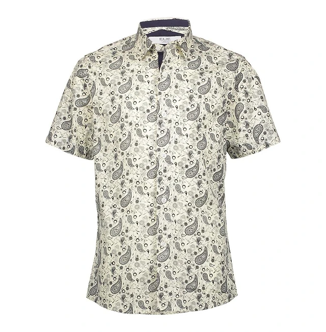 Elie Balleh Big Boys White Paisley Slim Fit Short Sleeve Shirt