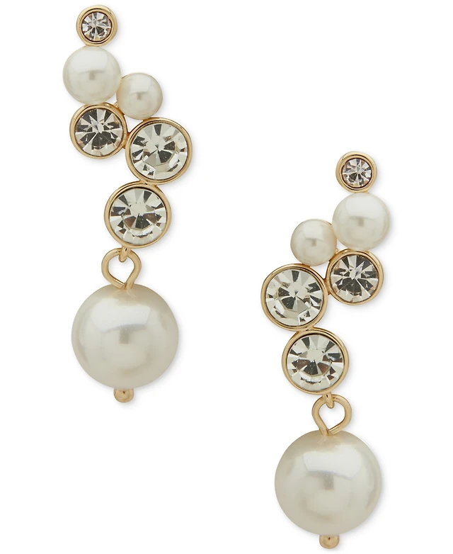 Emily in Paris Gold-Tone Crystal & Imitation Pearl Linear Drop Earrings