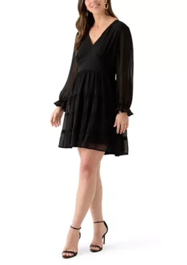 Plus Long Sleeve Tiered Babydoll Dress