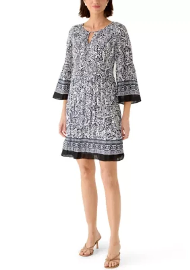 Women's 3/4 Sleeve Bandana Print Dress