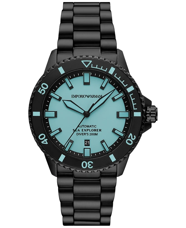 Emporio Armani Men's Automatic Three-Hand Silver Stainless Steel Watch, 43mm