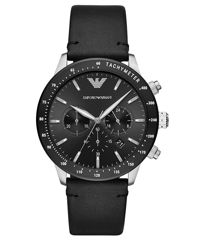 Emporio Armani Men's Chronograph Black Leather Strap Watch 43mm