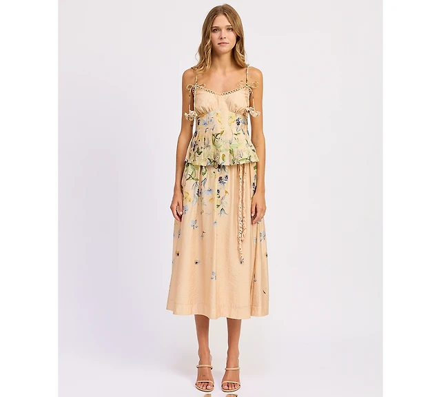 En Saison Women's Claire Ruffled Tiered A-Line Midi Skirt
