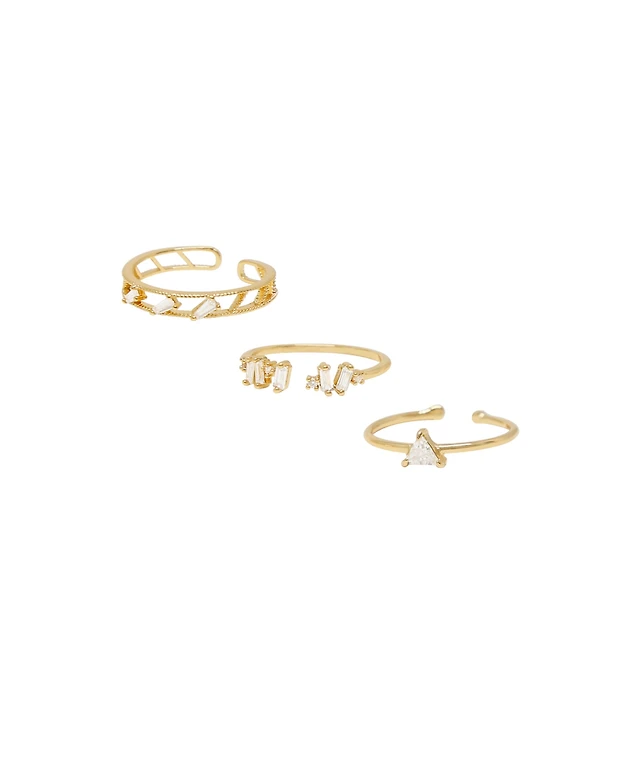 Ettika Love Story 18K Gold Plated Cubic Zirconia Ring Set of 3