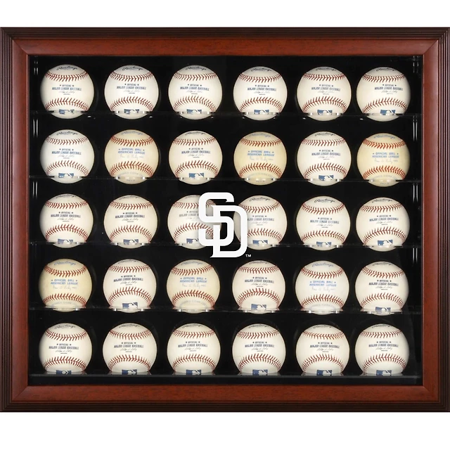 San Diego Padres Logo Mahogany Framed 30-Ball Display Case