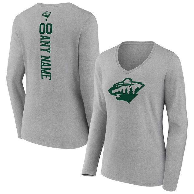 Women's Heather Gray Minnesota Wild Personalized Name & Number Long Sleeve V-Neck T-Shirt