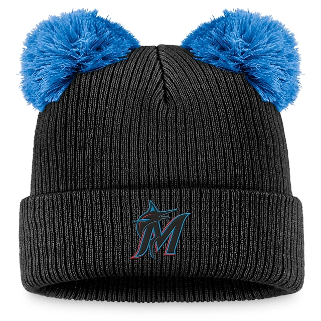 Women's Fanatics Black/Blue Miami Marlins Double Pom Cuffed Knit Hat