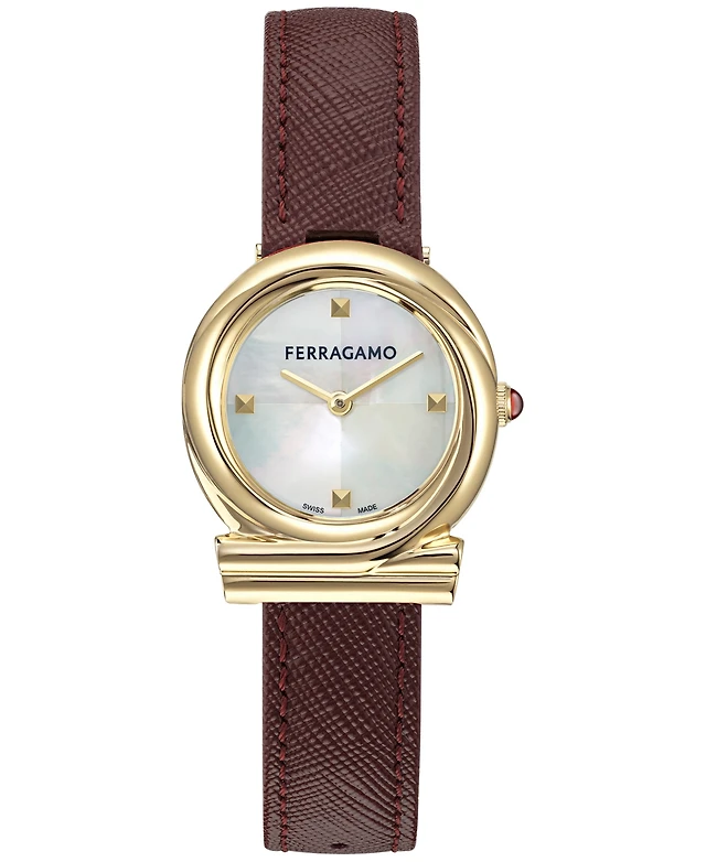 Ferragamo Women's Swiss Gancini Twisted Burgundy Leather Strap Watch 28mm