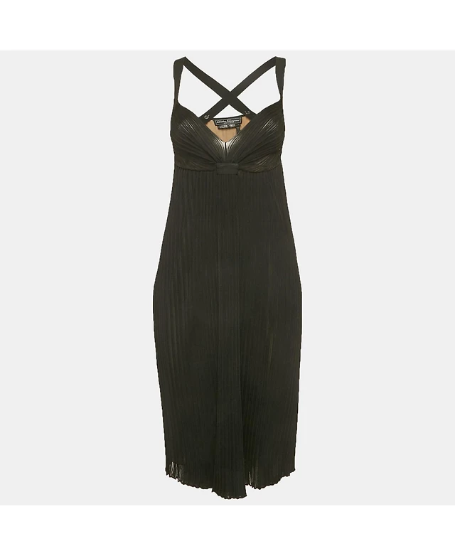 Pre-Owned Salvatore Ferragamo Women's Black Rib Knit Strappy Dress