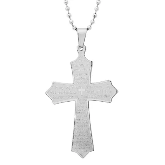 Steeltime Lord's Prayer Mens Stainless Steel Cross Pendant Necklace
