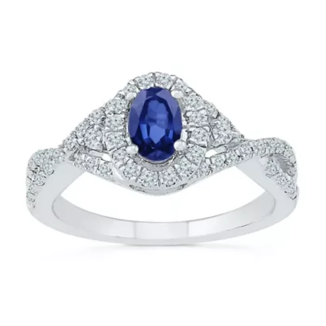 Womens Lab Created Blue Sapphire Sterling Silver Halo Promise Ring