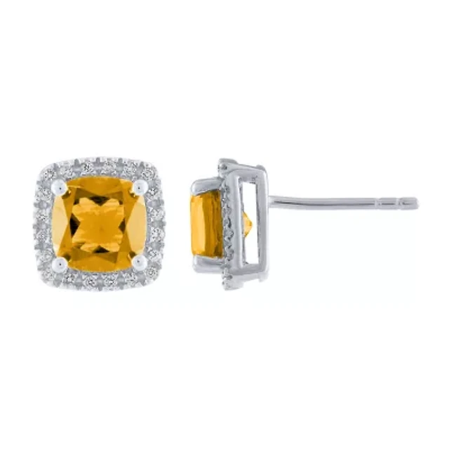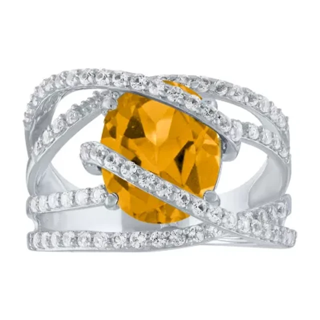 Womens Diamond Accent Genuine Yellow Citrine 14K Gold Over Silver Cocktail Ring