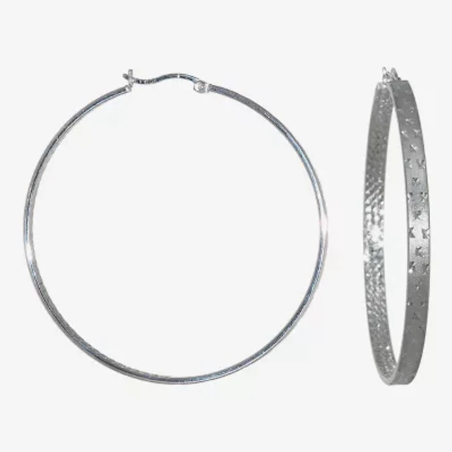 Sterling Silver Diamond-Cut Wide Hoop Earrings