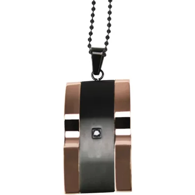Mens Two-Tone Stainless Steel & Cubic Zirconia Pendant Necklace
